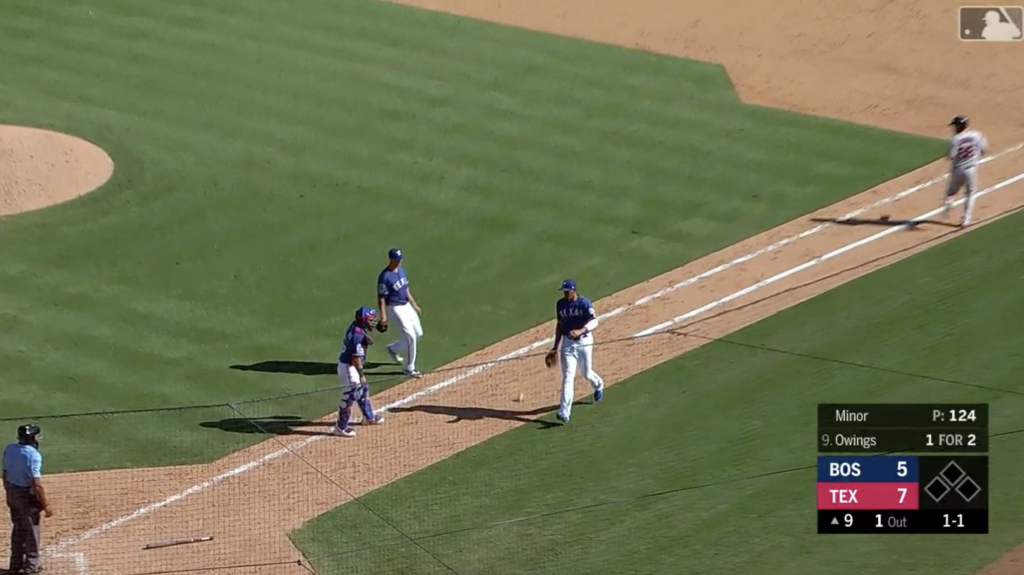 Neither thing occurred, of course. But it was cheap. It was a poke in the eye to the integrity of the game. You could say, it’s a meaningless game and the season was already lost. But you still play to win, even when you are as outmanned as the Rangers. Chris Woodward is always gushing about how his team fights until the very end.