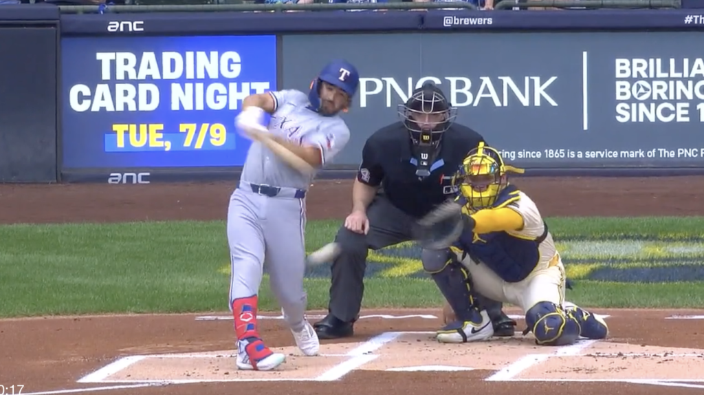 That left it up to the rookie Wyatt Langford. He did what most rookies do. Left the runner on base.