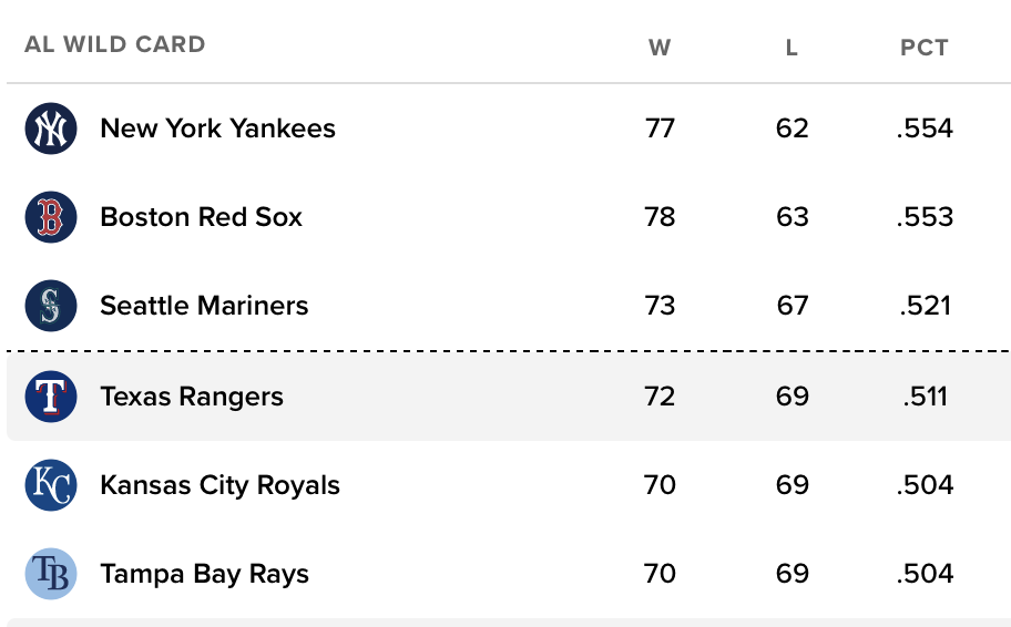 The only reason the Ranger have a legitimate shot at catching the Mariners for that third wild card spot is because it’s the Mariners. If it was any other team ahead of the Rangers, there would be no way they’d pull it off.