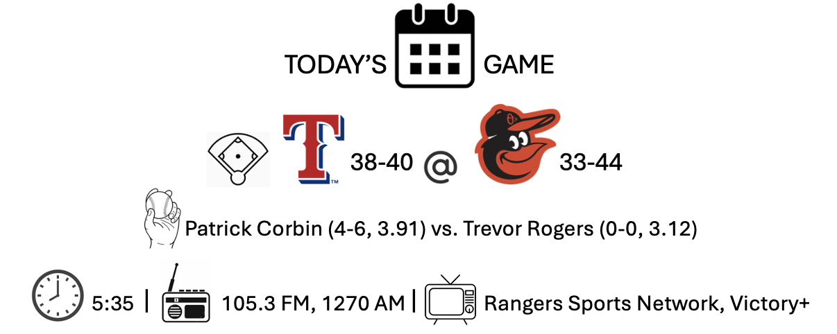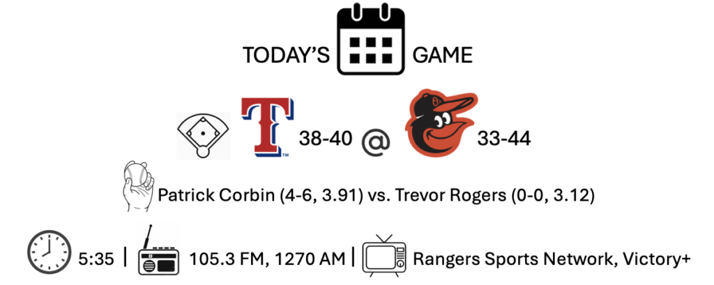 And now it’s the battle of the two most disappointing teams, the Orioles and the Rangers.