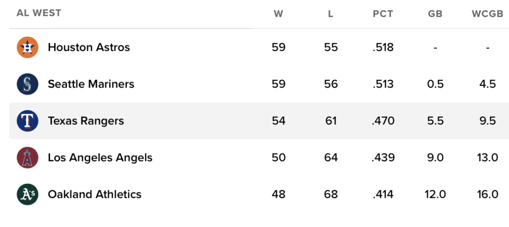 You have the same chance of getting a royal flush the next hand of poker you play as the Rangers have of finishing over .500 this year.