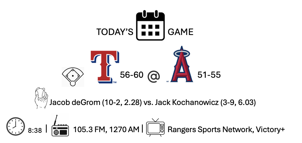 So now, fresh off a sweep of Atlanta and with the best record in baseball after the break, Texas heads to Anaheim to take on the Angels, who are finally falling back down to Earth.