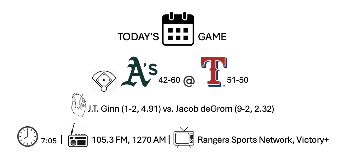 And, while it wasn’t a first, it seemed like it. The Rangers beat a left-handed starter, scoring five of the seven runs in their 7-2 victory over the Sacramento Athletics, off a lefty starter.