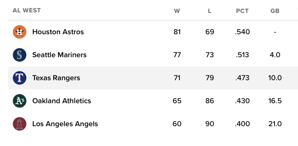 In RBIs, the Rangers have the third to worst guy there, too. Leody Taveras with his 41 comes in at number 133. Milwaukee’s Sal Frelick has 29.