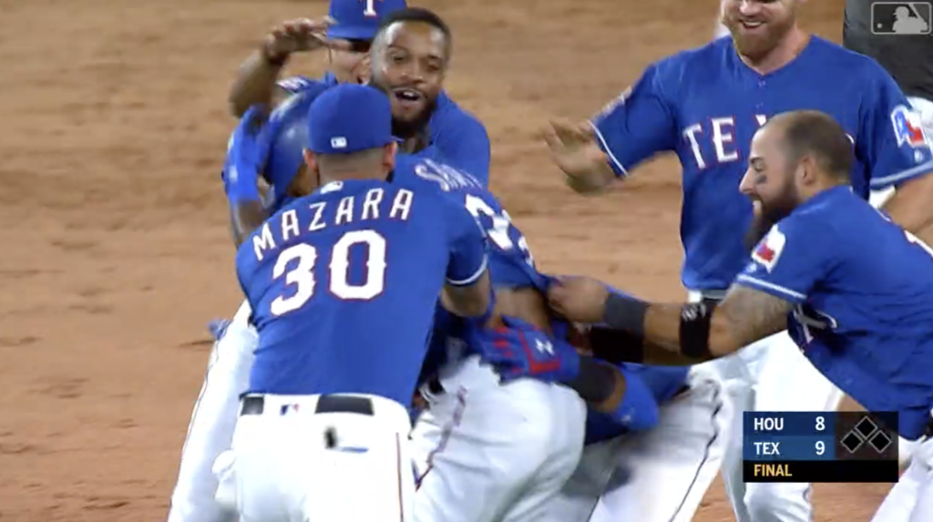 Win number fifty sent the stunned Astros home losing 9-8. That felt good.