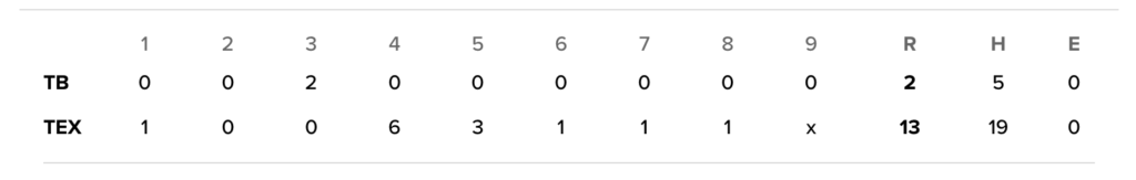 When it was all over, they had thirteen runs on nineteen hits. They swept Tampa Bay. And for one brief, shining moment, they have brought hope back to Rangers Nation.