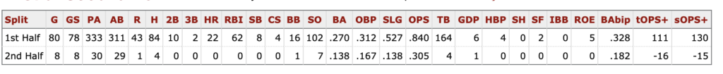 It’s been a total team offensive shutdown. And nobody exemplifies it more than Adolis Garcia. Here are his first half, second half splits (the faint of heart, beware):