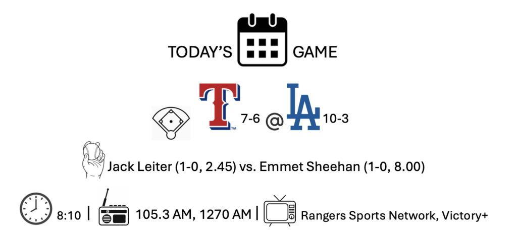 Another good thing to take from last night’s game is the fact that the Rangers were completive with the Dodgers. The 2026 season is all about who will play the Dodgers in the World Series. For one night, at least we know the Rangers could be competitive against them in October.