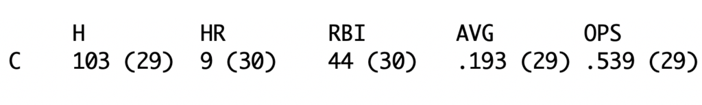 Here is the breakdown of where Rangers catchers ended the season in some key stats, with their position among the 30 major league teams.