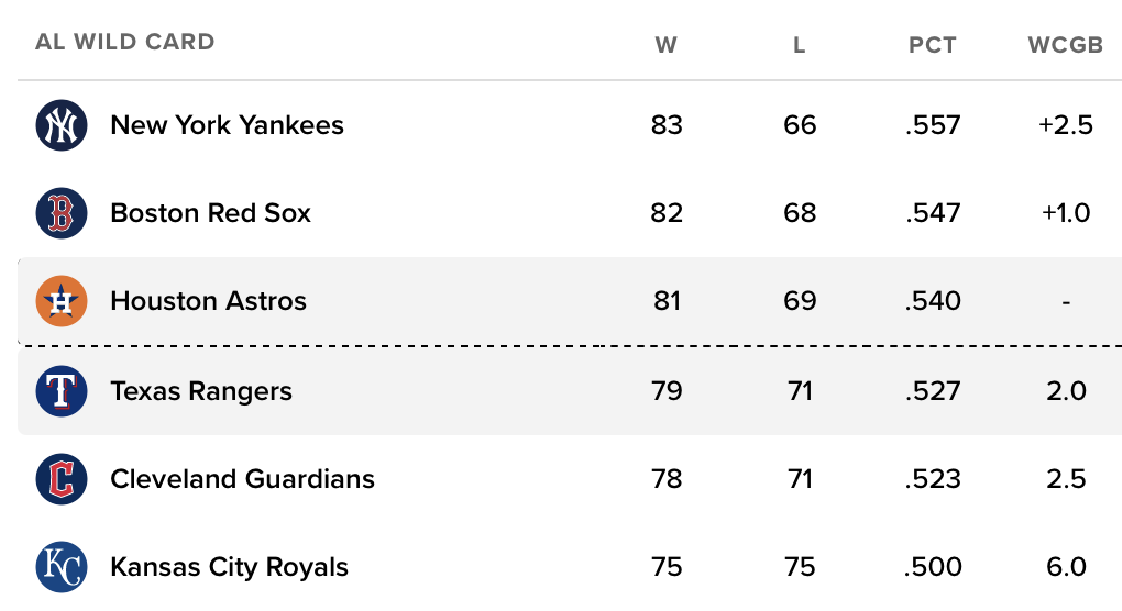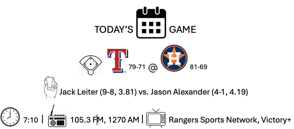 It’s Adolis time again. The Rangers final twelve-game run starts with three in Houston. With the Rangers two games behind the second-place Astros for the third wild card slot, the Rangers absolutely must win two of the three. That would gain them one game. A sweep would leapfrog them over. Anything less would be critical to their playoff hopes.