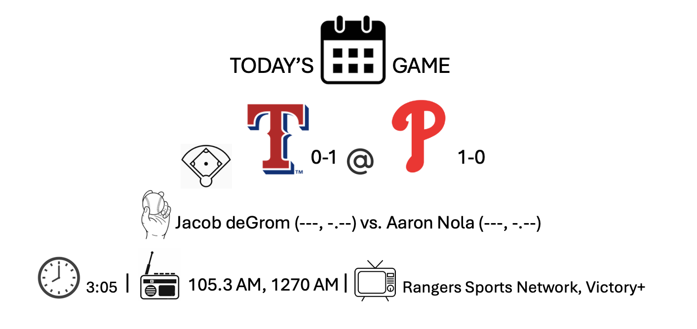 The Rangers resume action today after much needed off day. Jacob deGrom takes the ball today. While he had a successful 2025 season, he was prone to giving up the long ball, surrendering 26 homers. It was the second-most he’d giving allowed in one season in his career.