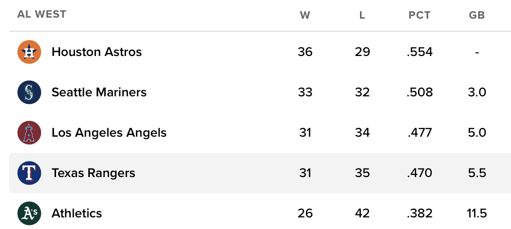The reality is, as bad as this team is, it’s lucky to be in the most mediocre division. They are not that far out of it. Houston has the lowest winning percentage of any division leader.