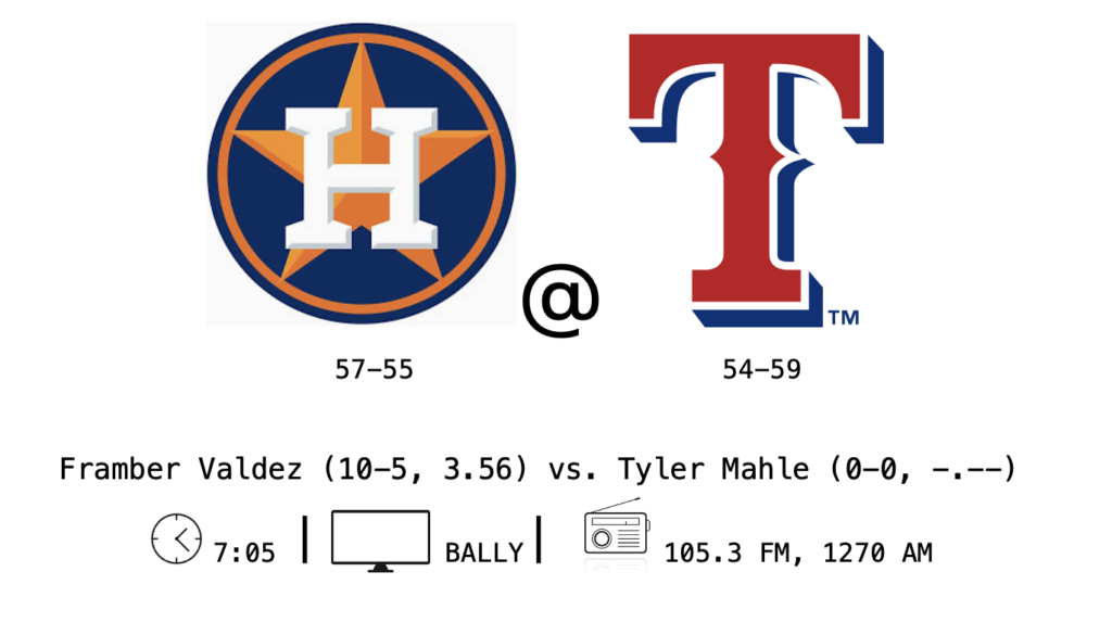 Trying to hold on to the last gasps of their own season, the Rangers only hope for a nearly-impossible playoff berth and knocking the Astros off their perch is to sweep Houston. (Then win about sixty-five percent of the rest of their games, but let’s sweep the Astros before we talk about after that.)