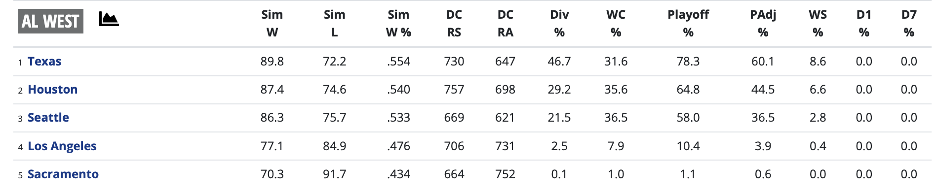 They’re the winner of a deep AL West division that PECOTA projects will send three teams to the playoffs this season, with the Astros (87-75) and Mariners (86-76) both projected as Wild Card teams after the Orioles.