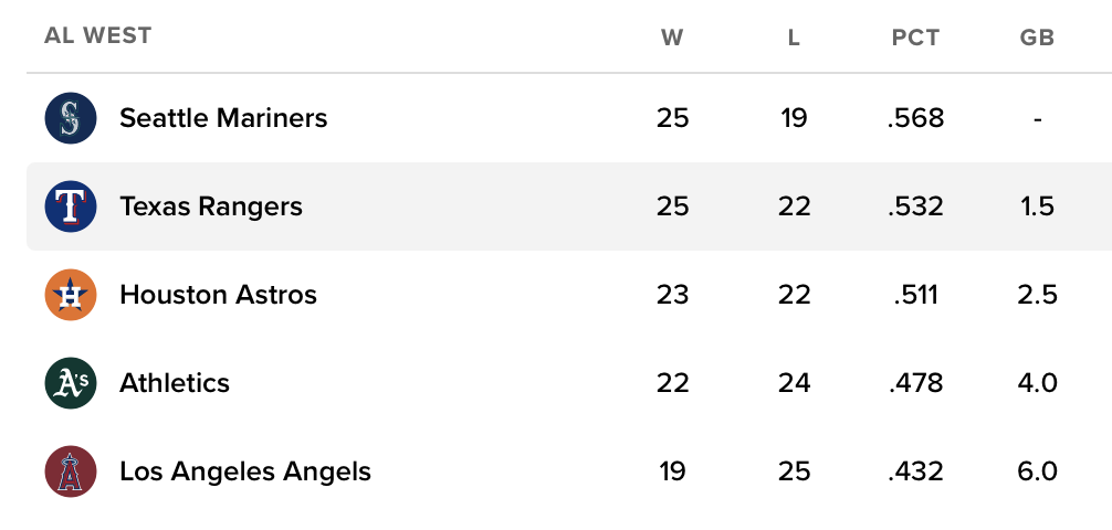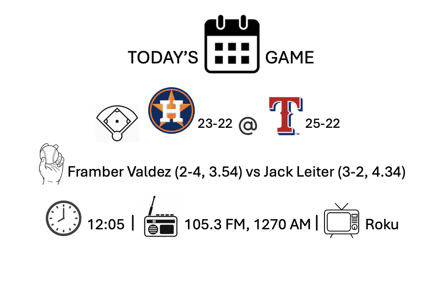 The Rangers let the Astros off the hook. They stranded Joc Pederson at second in the fourth, and went down one-two-three in the fifth.