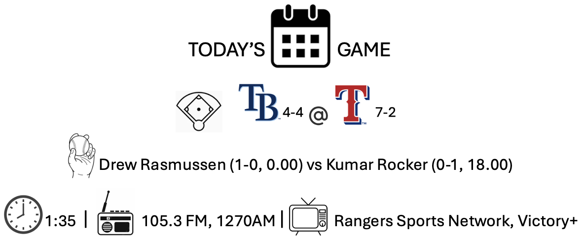 But Wyatt Langford hit a two-run homer in the sixth and the Rangers bullpen was, once again, brilliant, as the Big Three of Robert Garcia, Chris Martin, and Luke Jackson shut down the Rays, keeping them to the four runs deGrom let in.