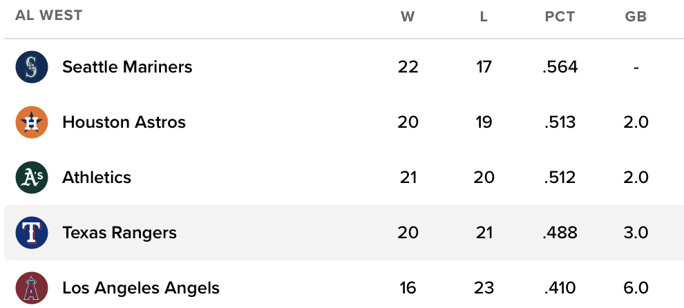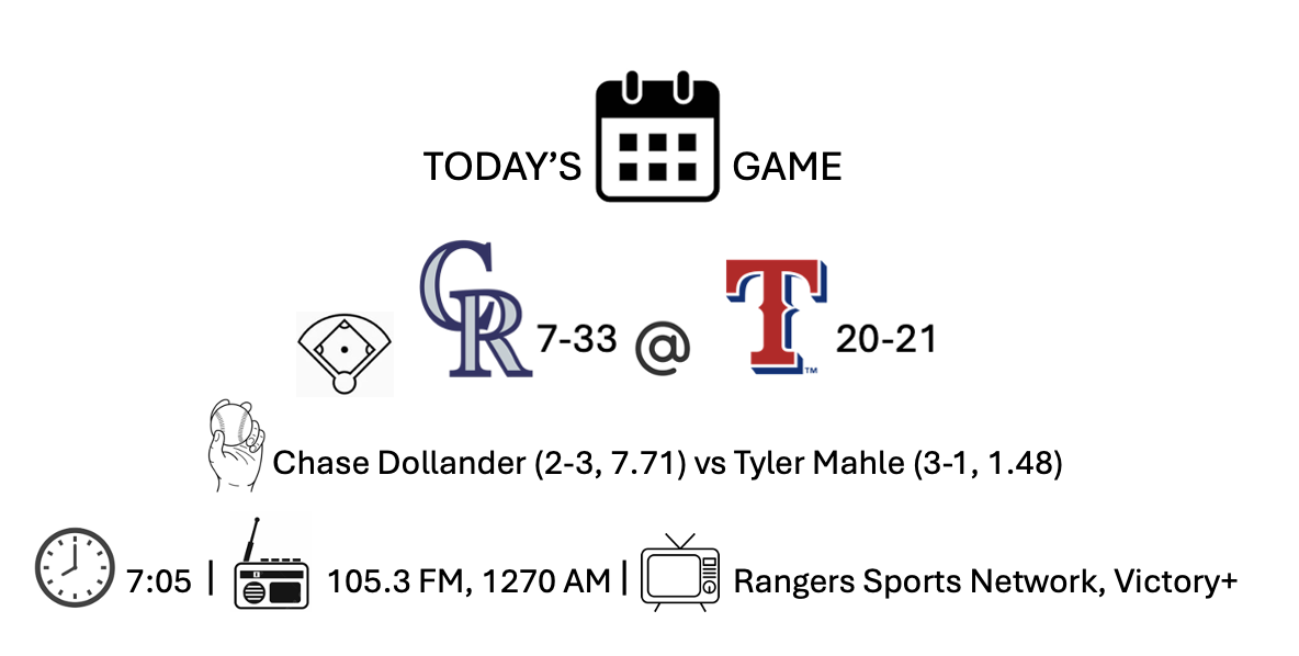 If only the Rangers weren’t fourth worst in runs scored, ahead of only the Rockies—who are on pace for the worst record ever, even worse than the White Sox last year and who fired their manager yesterday—this year’s White Sox team, and the Pirates, who fired their manager a few days ago.