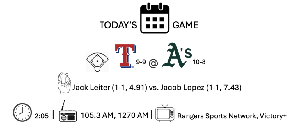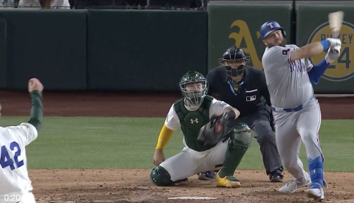 With two on, Jake Burger launched a three-run homer to give the Rangers life. But it was too little, too late. The went out meekly in the ninth, losing to the Athletics 6-5.