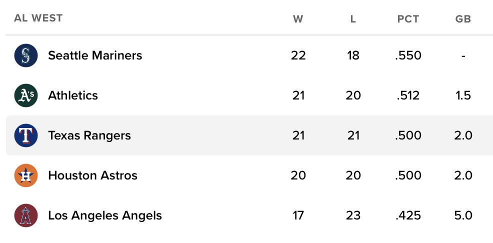 The Rangers returned to .500.