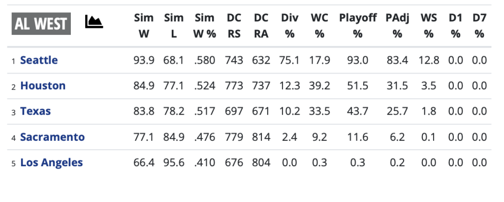 Texas, who won 81 games in 2025, is predicted to win 83 games, which is more generous than RangersRounding3rd would predict.