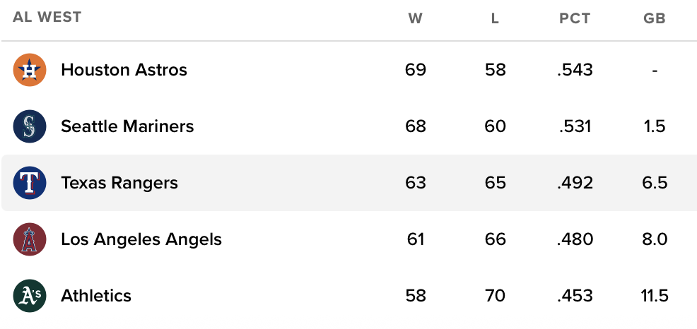 It was only the Rangers second win in six games on this road trip. With only thirty-four games left, with the Rangers under .500, and with the Rangers five games out of the wild card with three teams ahead of them, it’s a case of too little too late.