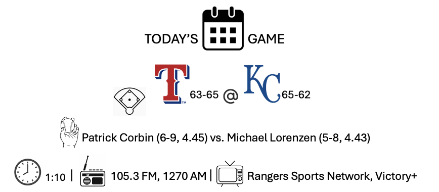 Cody Freeman and Evan Carter led off the top of the ninth like most Rangers do in the last innings: meekly grounding out. Then, the Royals came bearing gifts. Wyatt Landford walked. Corey Seager grounded to first, but that turned into an error, so the Rangers had runners at first and second. Marcus Semien nudged an infield single to load the bases. Then Kyle Higashioka cleared the bases with a double, putting the Rangers up 6-3.