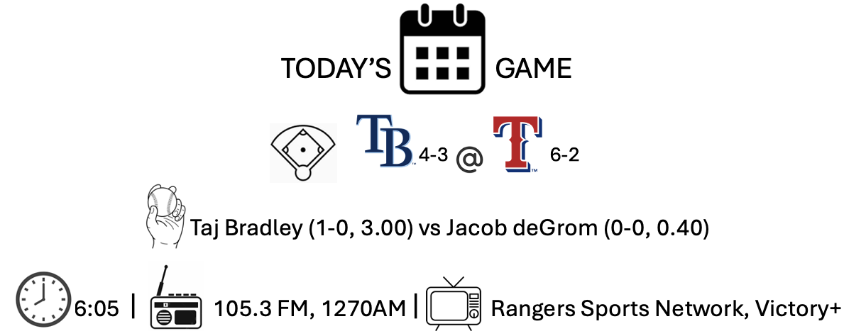 But, so far, the Rangers have been able to navigate every speedbump. They lost Jon Gray and Cody Bradford in spring training. Corey Seager pulls up with a calf injury that threatens to drag on. Josh Jung, once again, goes on the I.L. this time with a pinched nerve—who knows what his next I.L. stint will be for, but it is coming.