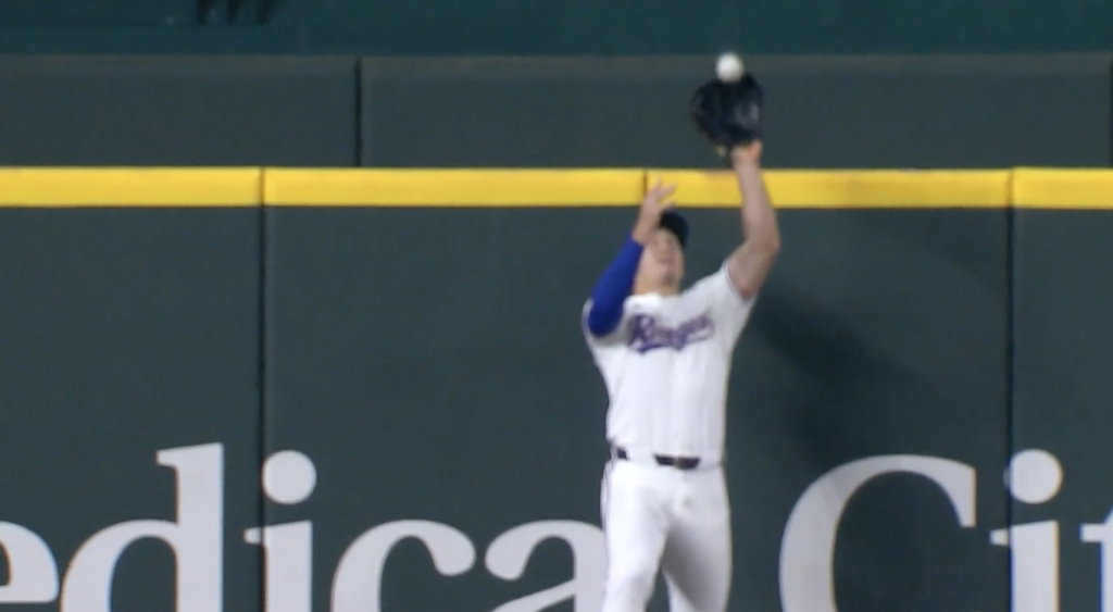 Wyatt Langford ends the game with a home-run robbing catch.