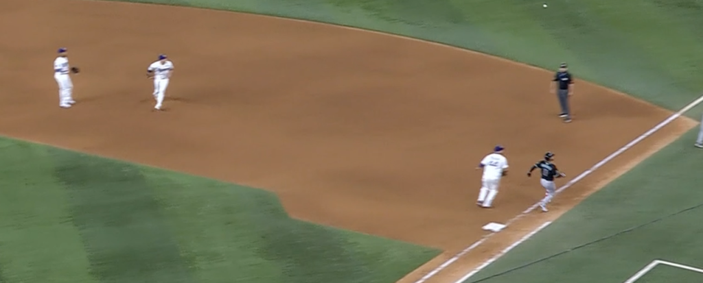 Garcia took the mound in the seventh with Texas clinging to a 2-1. Arizona catcher Jose Herrera led off with a ground ball hit back to Garcia that he bobbled. Then, in his haste to erase Rangers fans hatred toward him and in his delusion into thinking he could still get the out, with the runner obviously going to be safe, Garcia executed an ill-advised desperate attempt to save face. Bending over between first and second, he hiked the baseball from under his legs, thirty feet over Rangers first baseman Rowdy Tellez, and into the camera well, allowing the Diamondbacks runner to take second, which he eventually scored,