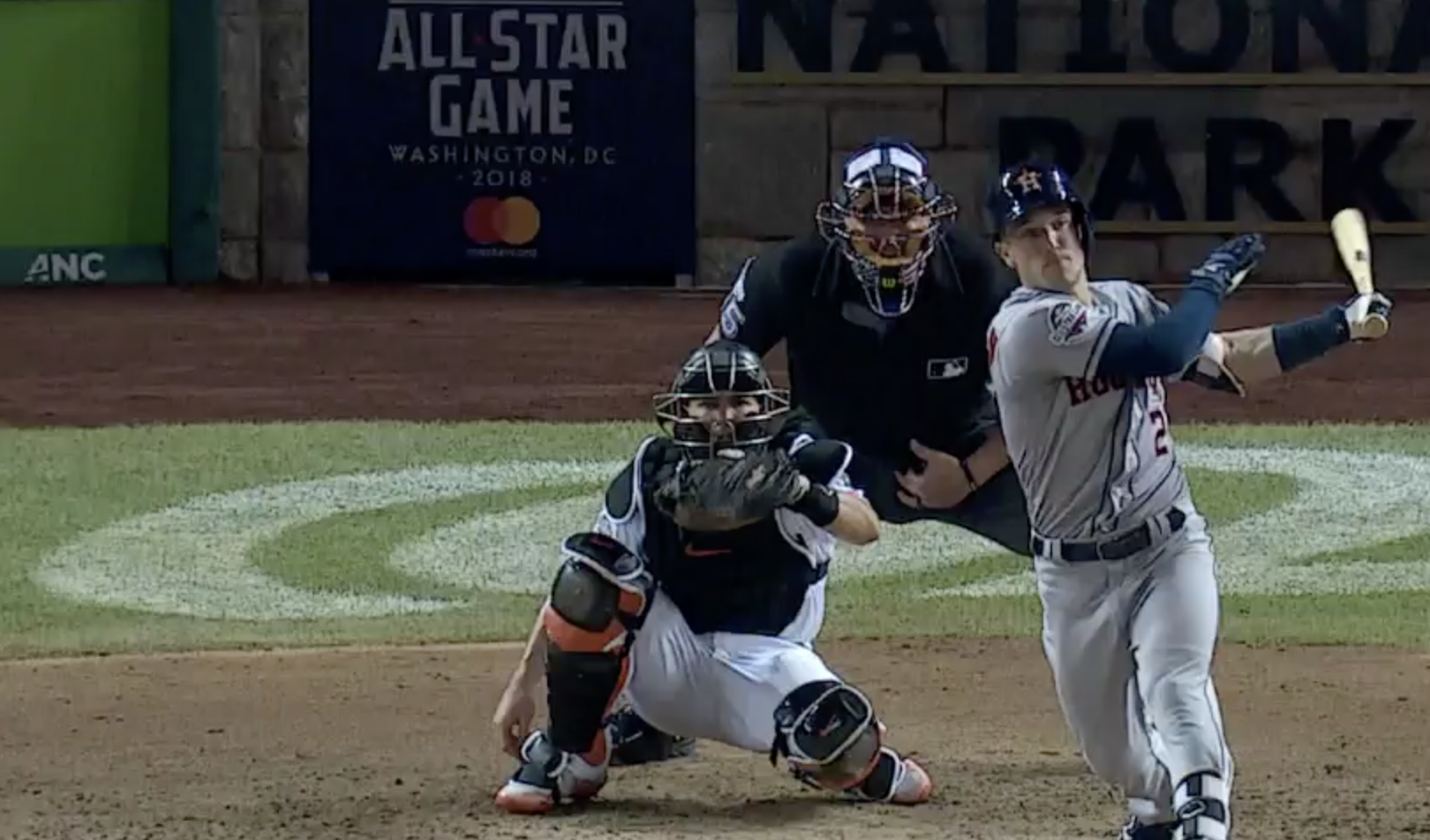 Houston’s Alex Bregman connects for the go ahead run in the tenth inning, earning him All-Star Game M.V.P. honors.