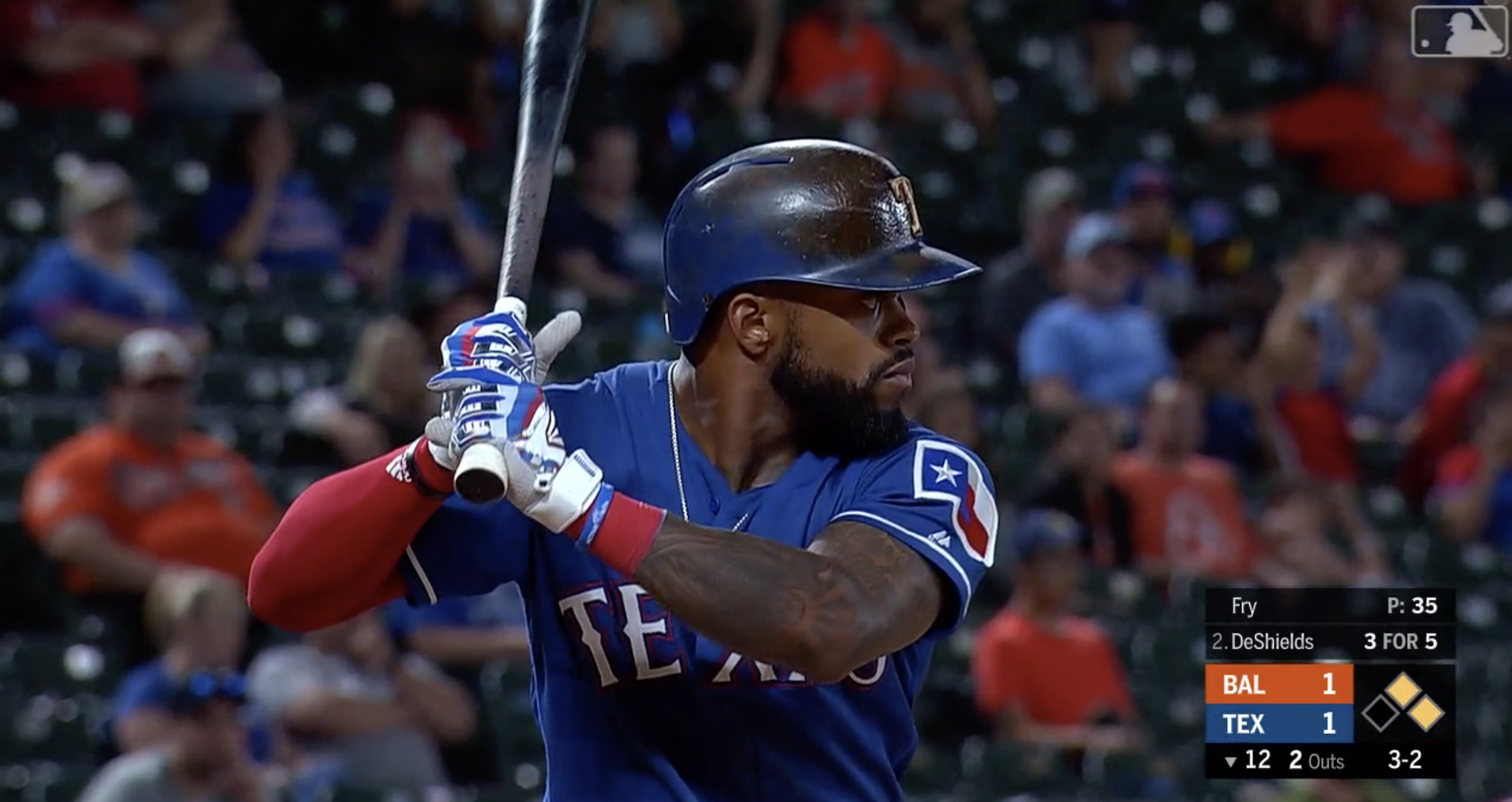 DeShields had four hits, scored the first run, and drove in the second, and winning, run. He is 6-for-11 since being called back up to replace Joey Gallo on the roster.