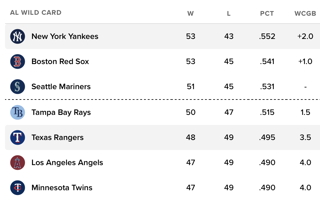 They’re eight-and-a-half games out of first. Changes are slim they’ll catch Houston. The wild card is their only hope. They’re three-and-a-half games away from Seattle to get there. That’s encouraging because Seattle always folds. Of course, the Rangers have the Tampa Bay Rays between them and Seattle.