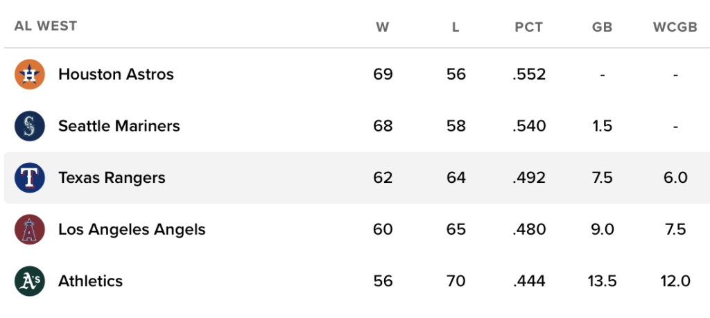 The fact is, yes, they do have slim hopes. But this week will determine their fate, because the two teams ahead of them to be the fourth wild card slot (remember, only three make it) are Kansas City and Cleveland. Those two teams happen to be the Rangers opponents the next six games. They head to play the Guardians after their four-game series against the Royals.