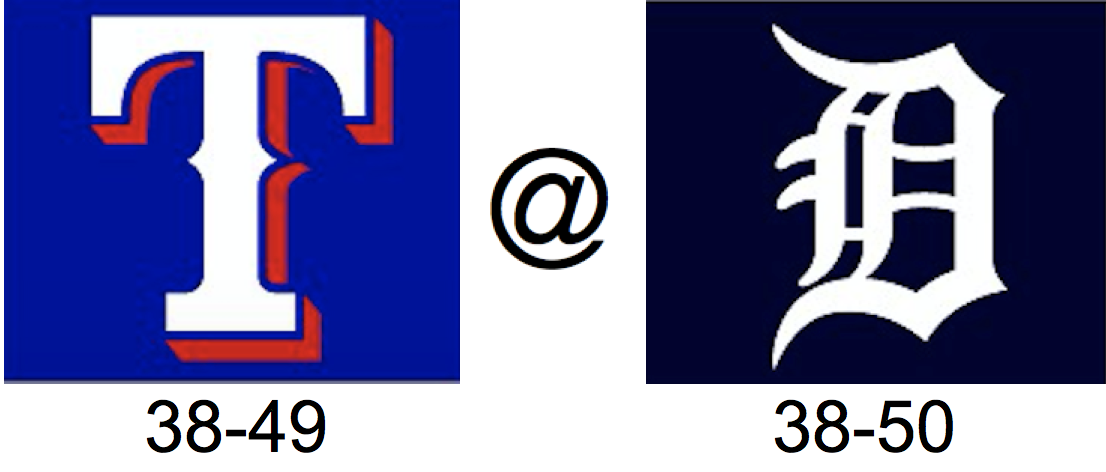 If the Rangers were in the A. L. Central, they’d be in second place. A distant second, with no shot at the postseason. But second is better than last no matter how bad you are. Other than Cleveland, every team in the Central is under .500 and worse than the Rangers. The Tigers by only a hair, both teams having won just 38 games. The Ranger have one fewer loss. (This upcoming epic four-game battle will answer it all.)