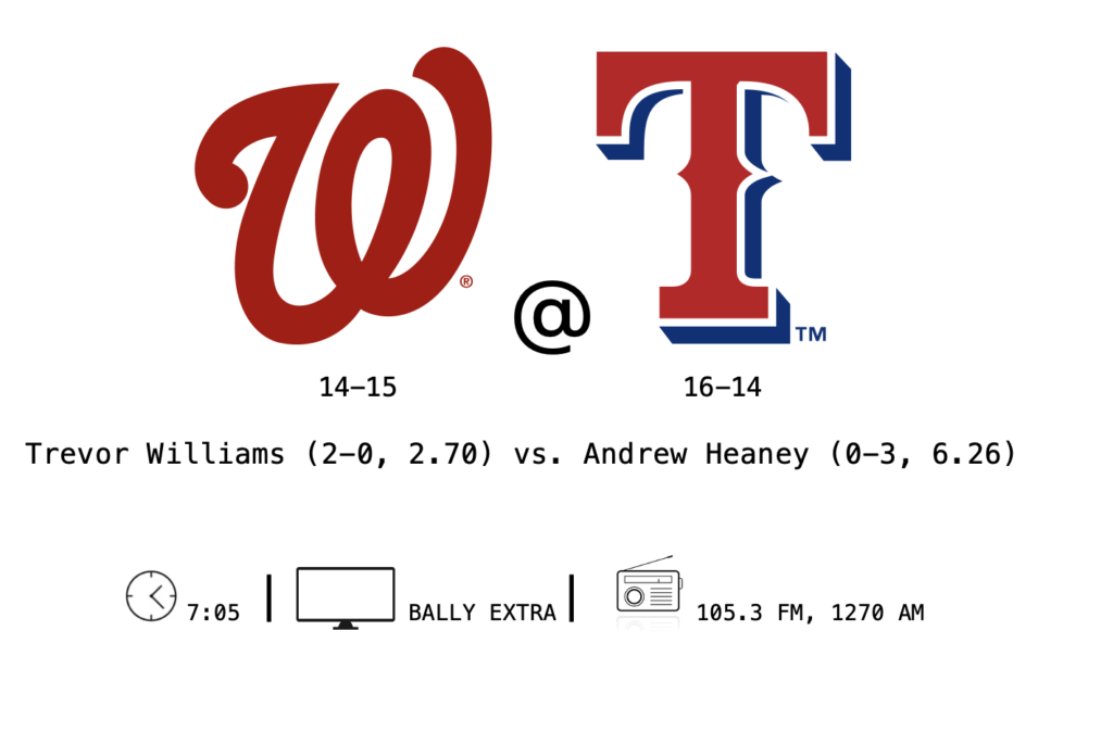 Marcus Semien tripled. Then doubled. Josh Smith continued his All-Star bid with a home run. Leody Taveras knocked one over the fense as well. Evan Carter, who has turned himself into a platoon player by his inability to hit lefties, got a hit late in the game and stole a base. That’s a rare occurrence for the Rangers this year, coming into last night’s game dead last in stolen bases in the American League with thirteen. Now fourteen. The Nationals, by the way, have fifty-four.