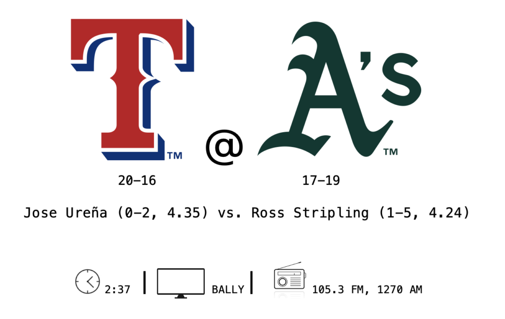 They pretty much matched that effort last night, down 2-0 for seven innings of futile offense and even more futile defense. But once the Athletics removed their lefty starter (thank you, Pitch Count Baseball), the Rangers bats came alive. More importantly, Corey Seager’s bat came alive. By time the eighth inning rolled around, the Rangers had had just three baserunners. None touched second.
