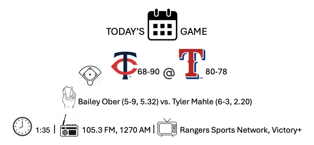 Jonah Heim singled McKinney to third. Then, the Minnesota Benevolent Society showed up. Twins pitcher Travis Adams was the first benefactor. His wild pitch scored McKinney, allowing Heim to get to second.